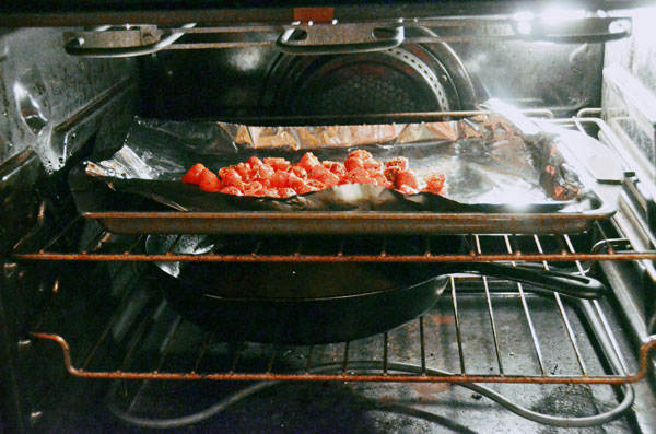 This recipe has two parts-- roasted tomatoes and the pasta itself. Roasted tomatoes are a good staple to perfect, as they go well with gorgonzola to stuff portabellas, atop garlic toast, and as an addition to a winter soup.